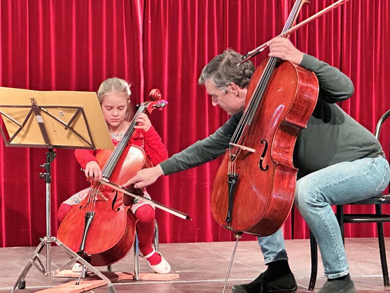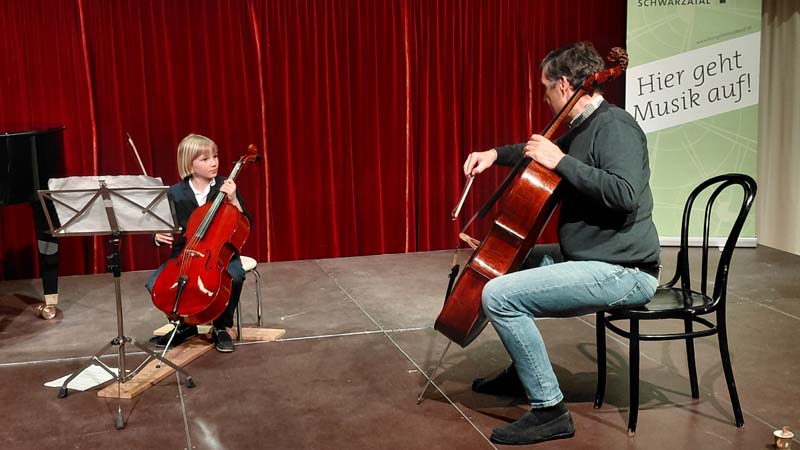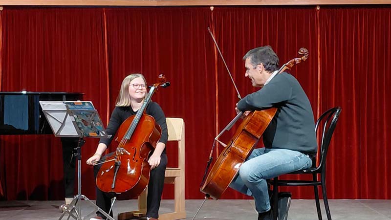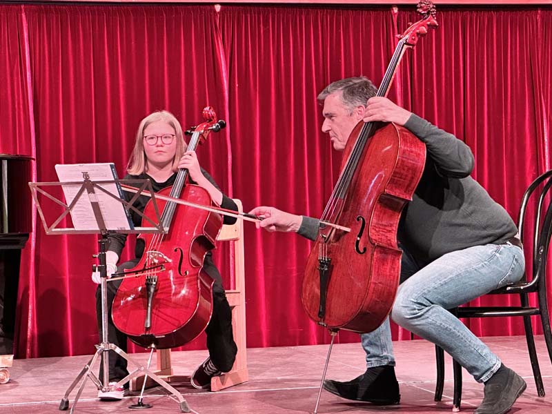 Der bekannte Cellist Prof. (privH) Othmar Müller ( Artis Quartett Wien 1980- 2025, Josef Haydn Privathochschule) begeisterte unsere SchülerInnen im Kulturschloss Reichenau mit wertvollen Anregungen und motivierenden Worten.