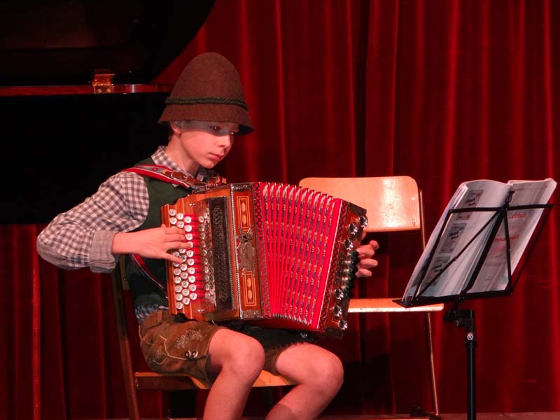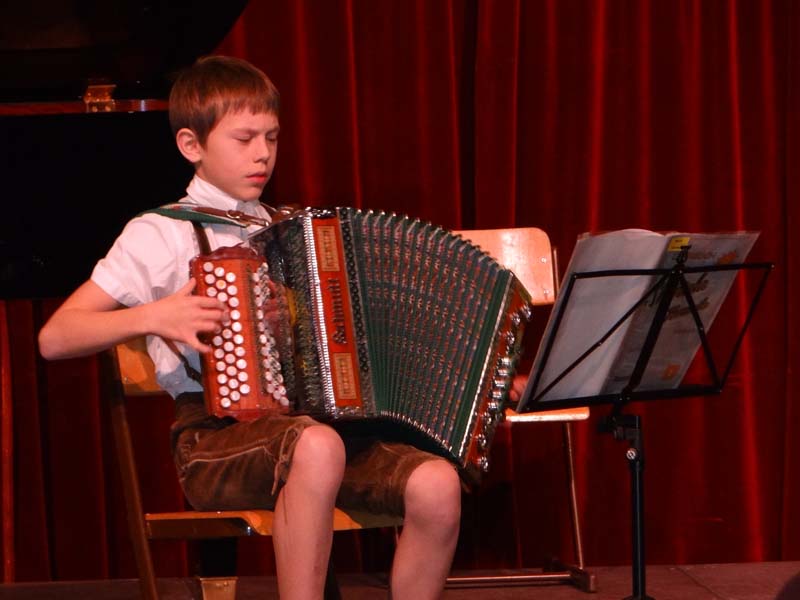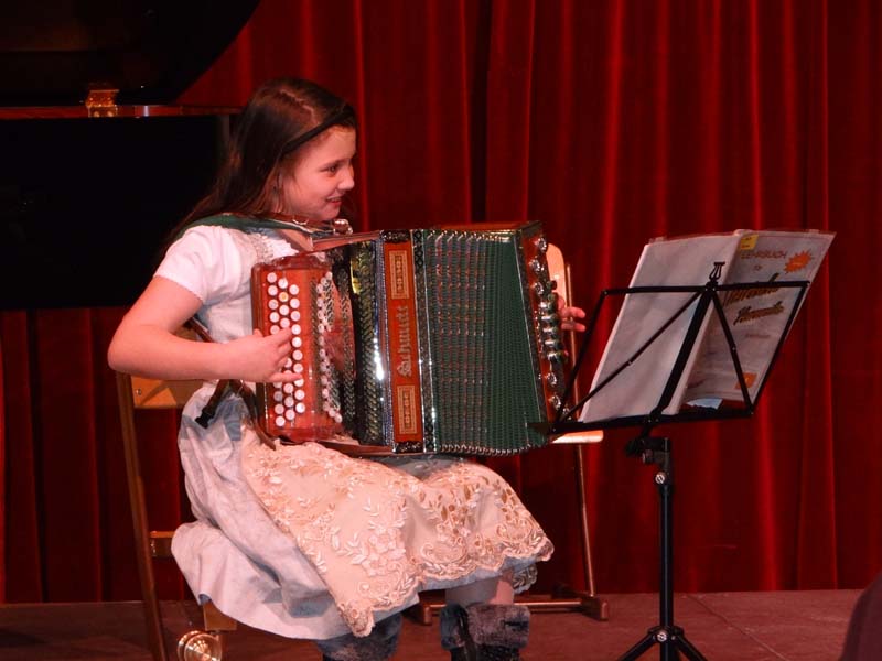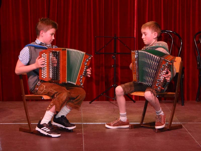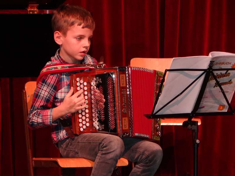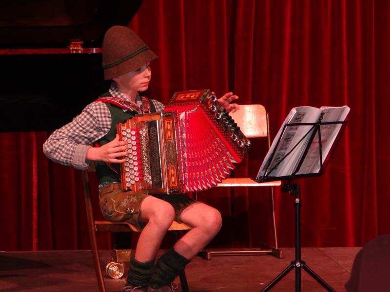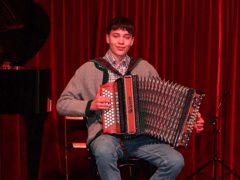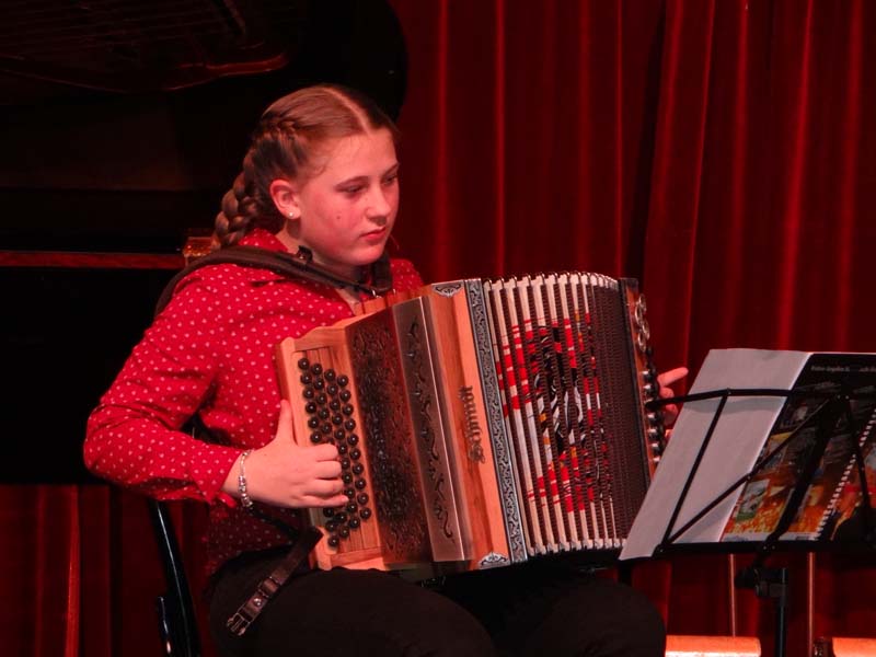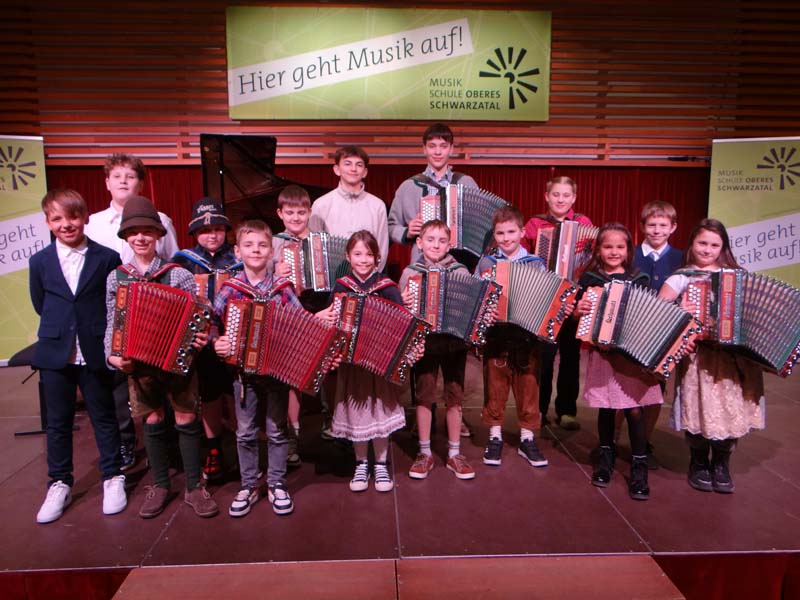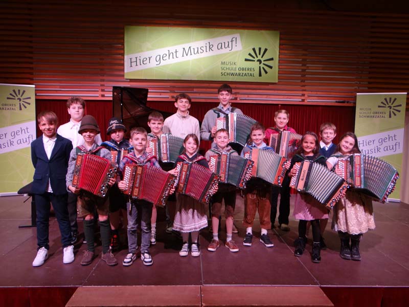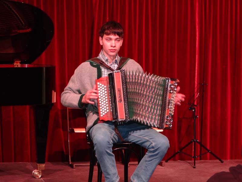Zünftig spielten die SchülerInnen der Steirischen Harmonika Klasse von Angeligka Bugl beim Klassenabend am Donnerstag, den 19. Februar 2026, im Kulturschloss Reichenau auf.
