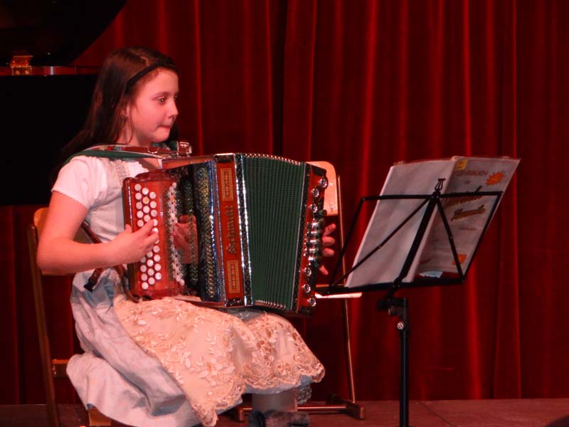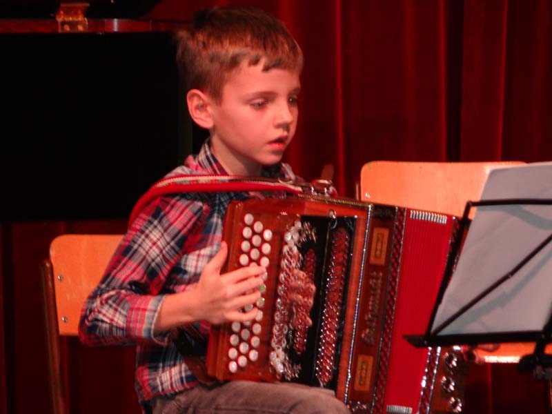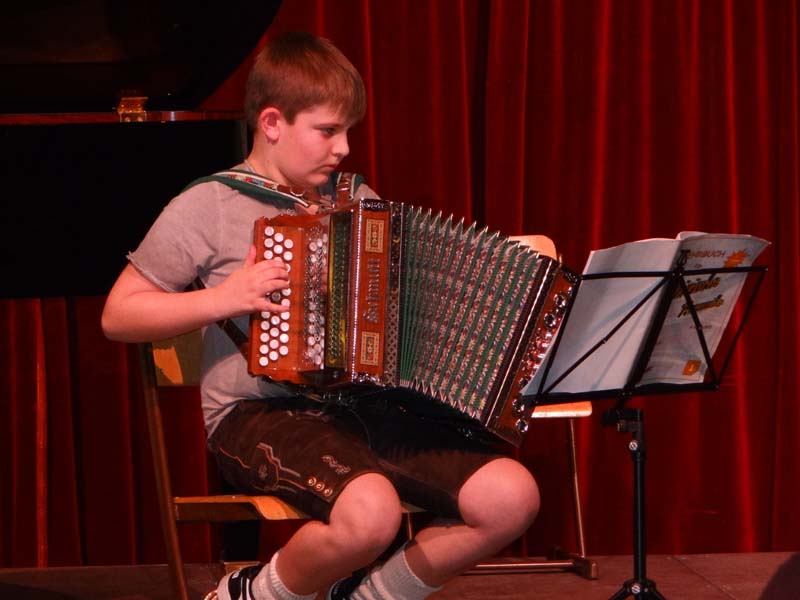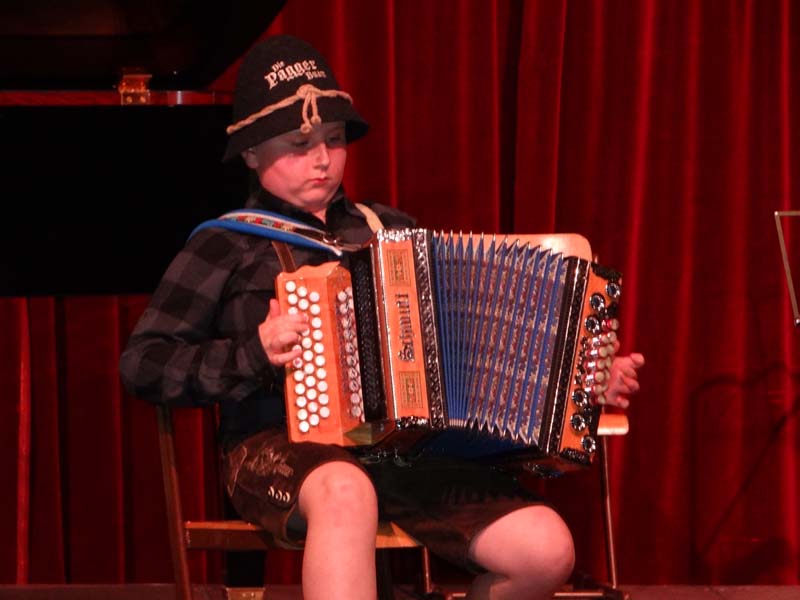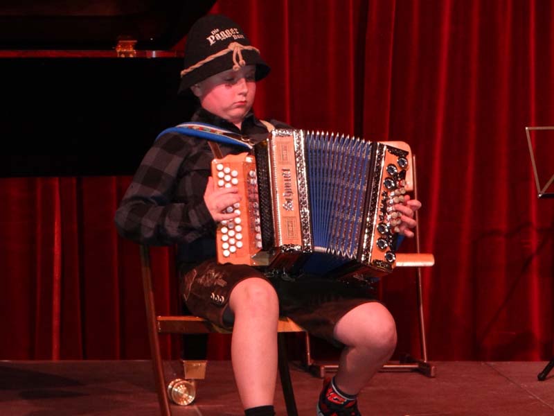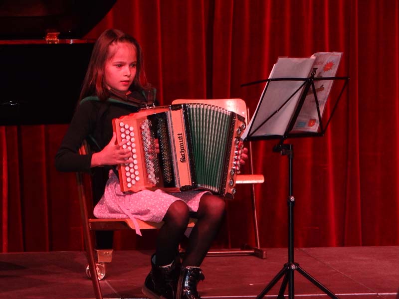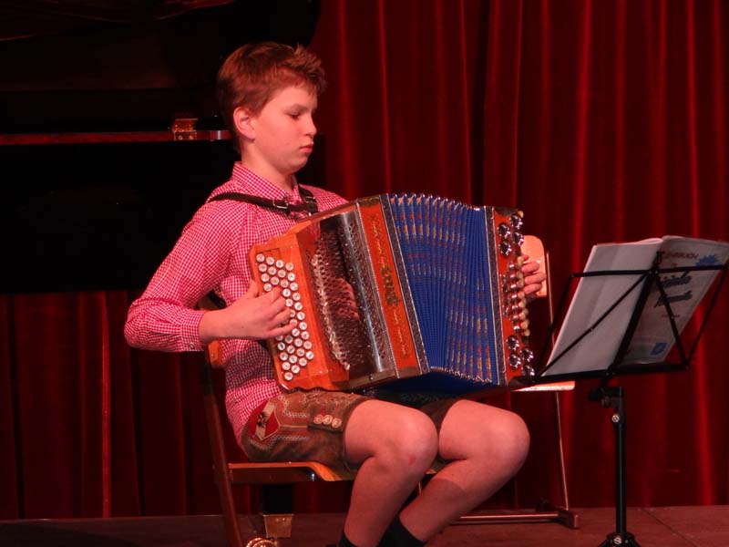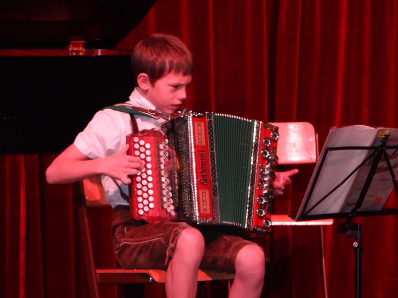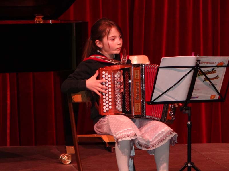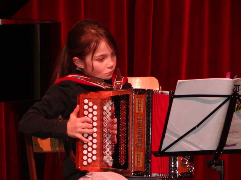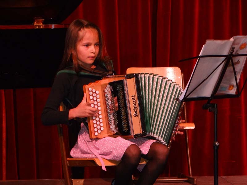 Zünftig spielten die SchülerInnen der Steirischen Harmonika Klasse von Angeligka Bugl beim Klassenabend am Donnerstag, den 19. Februar 2026, im Kulturschloss Reichenau auf.
