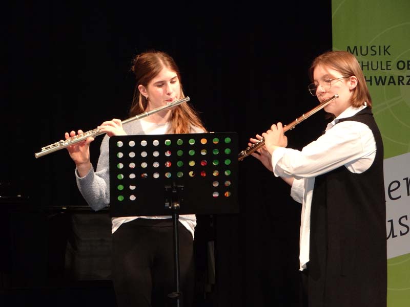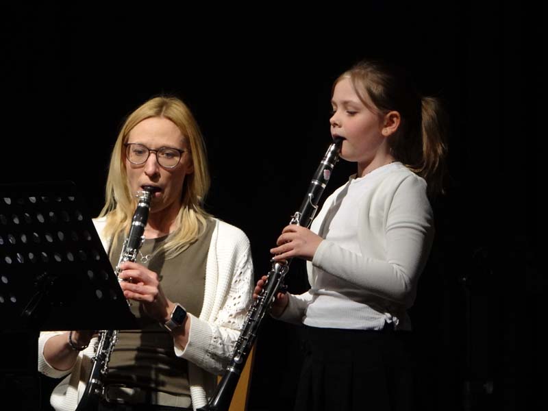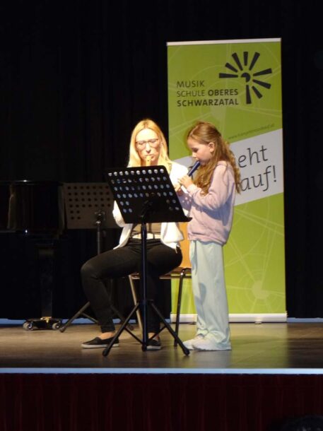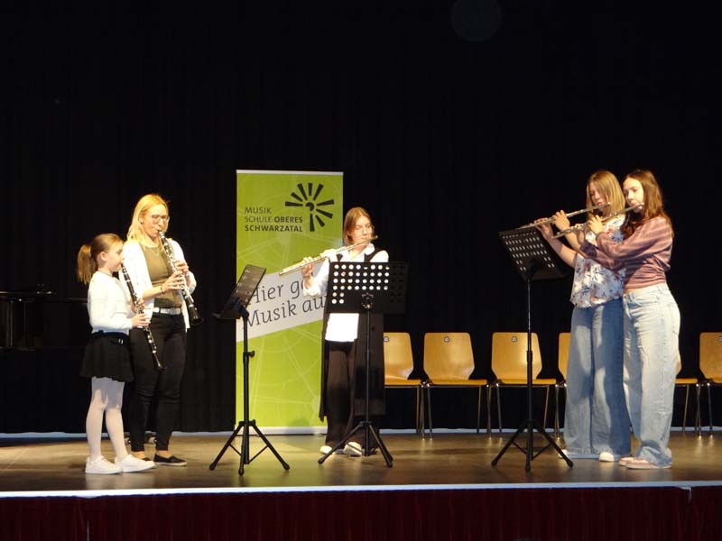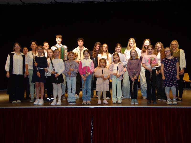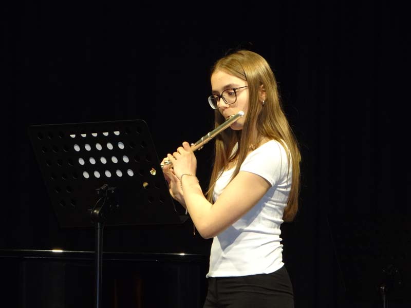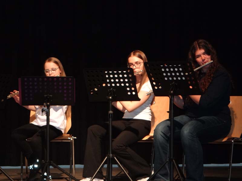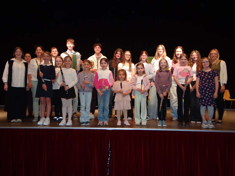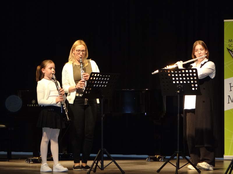 Beim Klassenabend von Sophia Bründl-Pandzich (Querflöte, Blockflöte), MMag. Therese Hochegger (Klarinette, Saxophon, Blockflöte) und Maria Polreich (Querflöte, Blockflöte) zeigten am Montag, den 20. April 2026, die SchülerInnen im Stadtsaal Gloggnitz ihr Können.