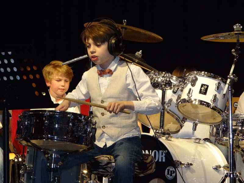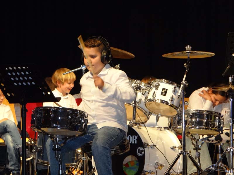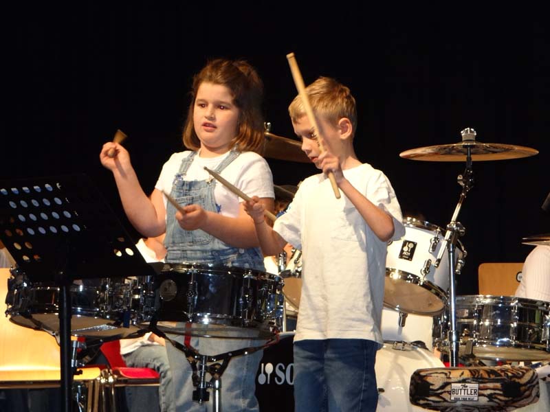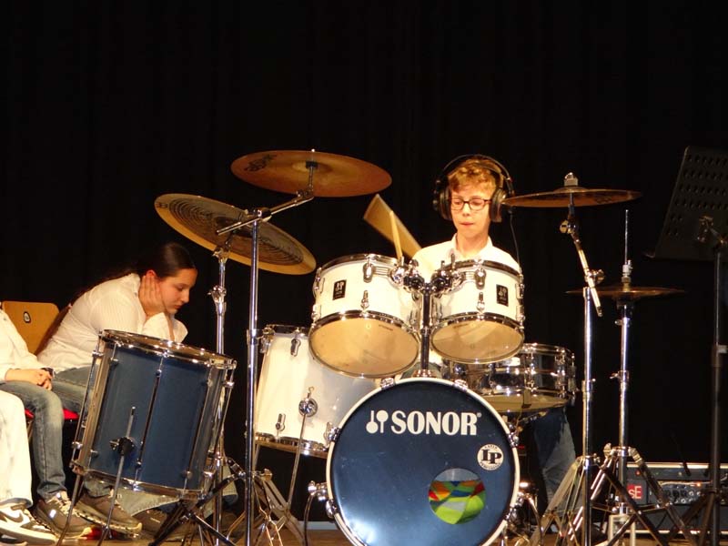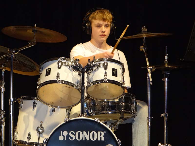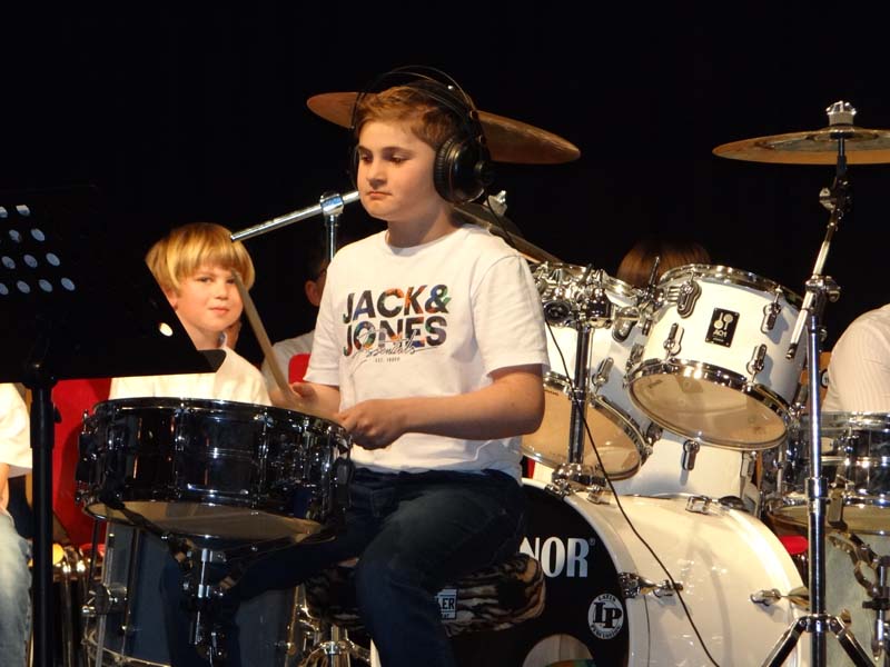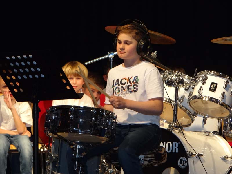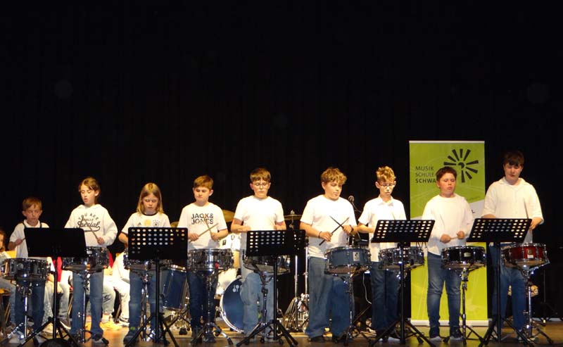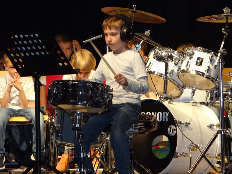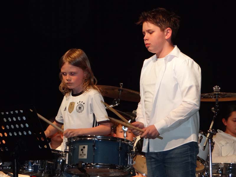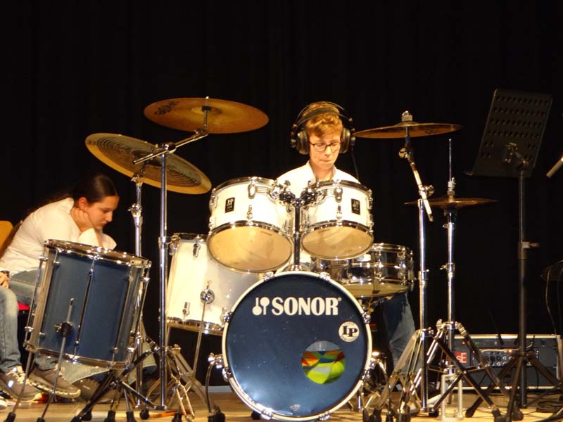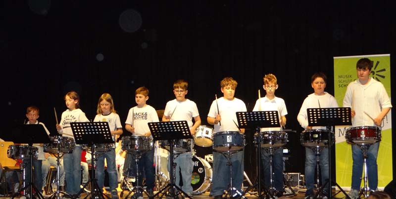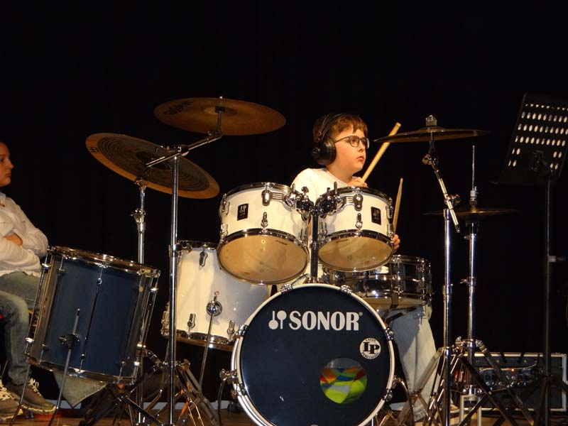 Auf der Snare-Drum, am Schlagzeug und mit Stabspielen wurde der Saal zum Beben gebracht.