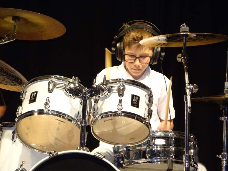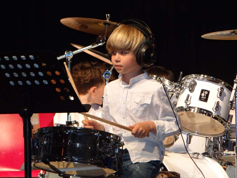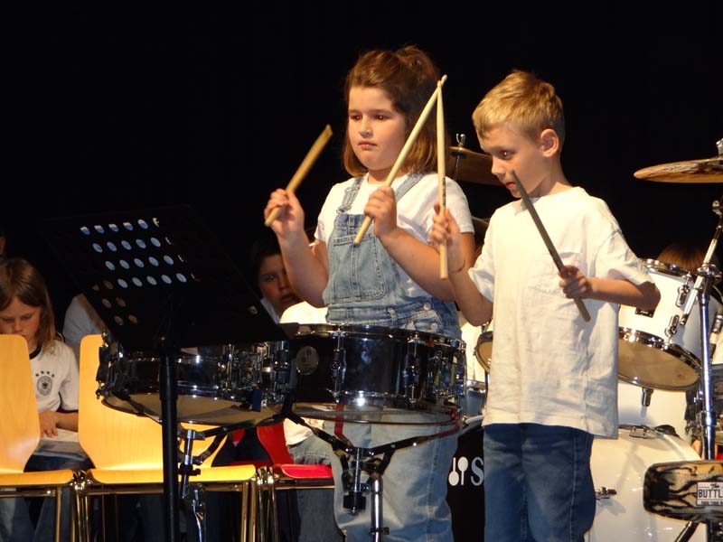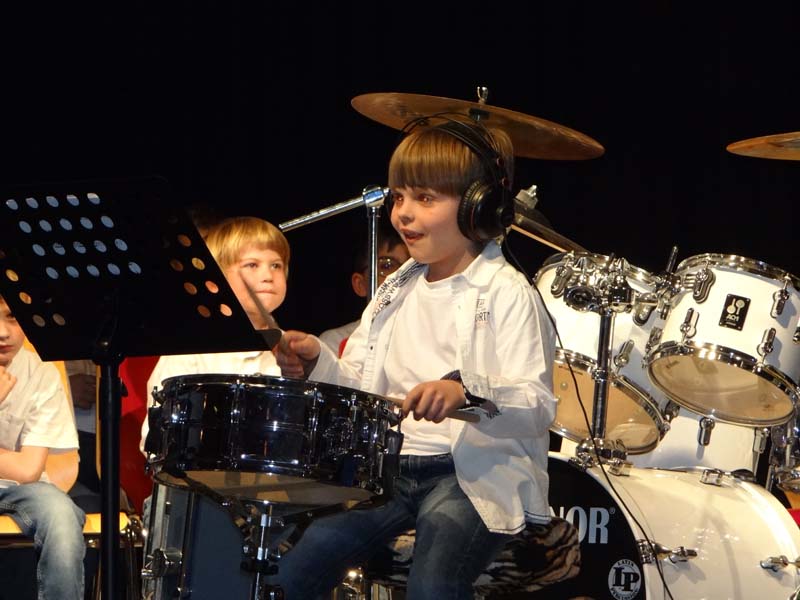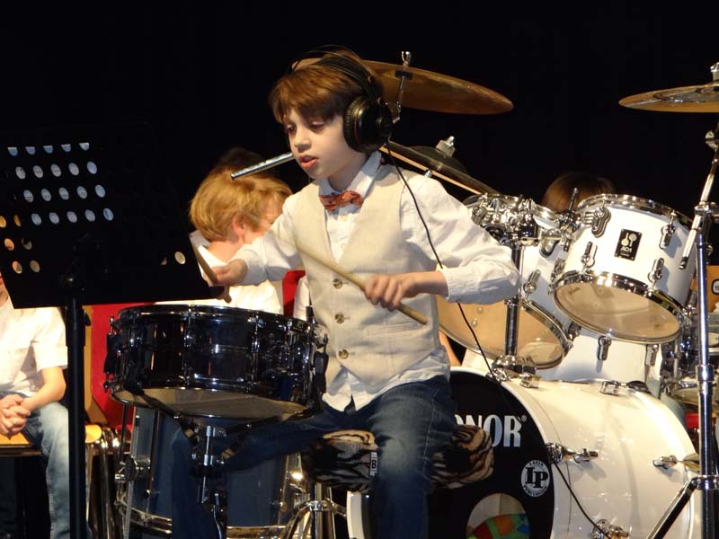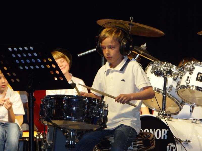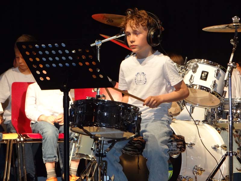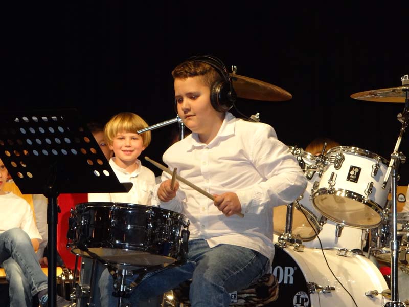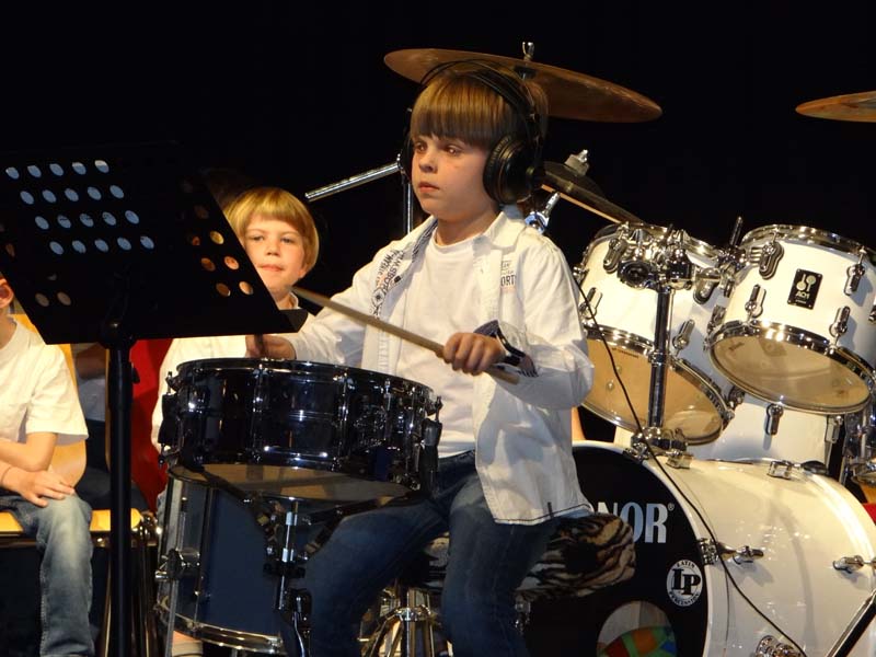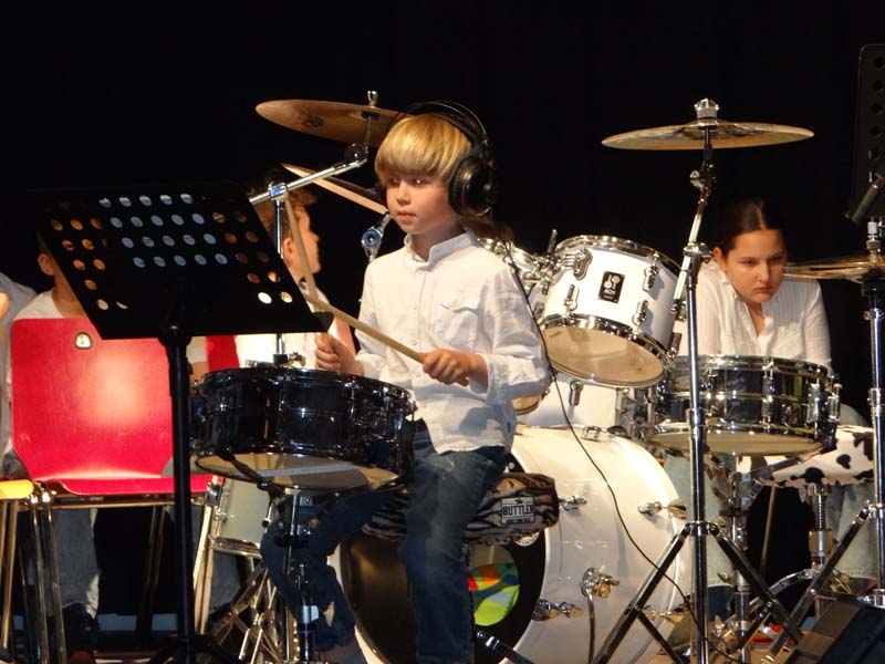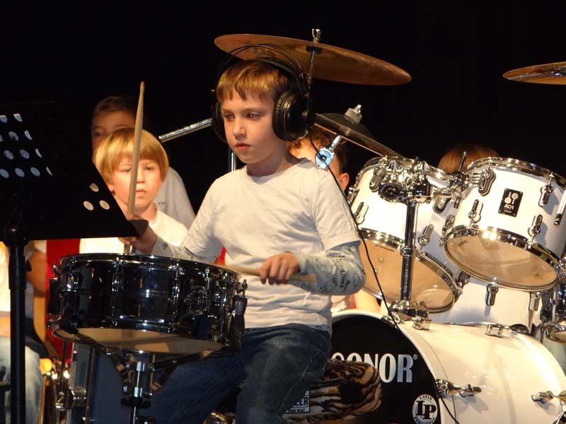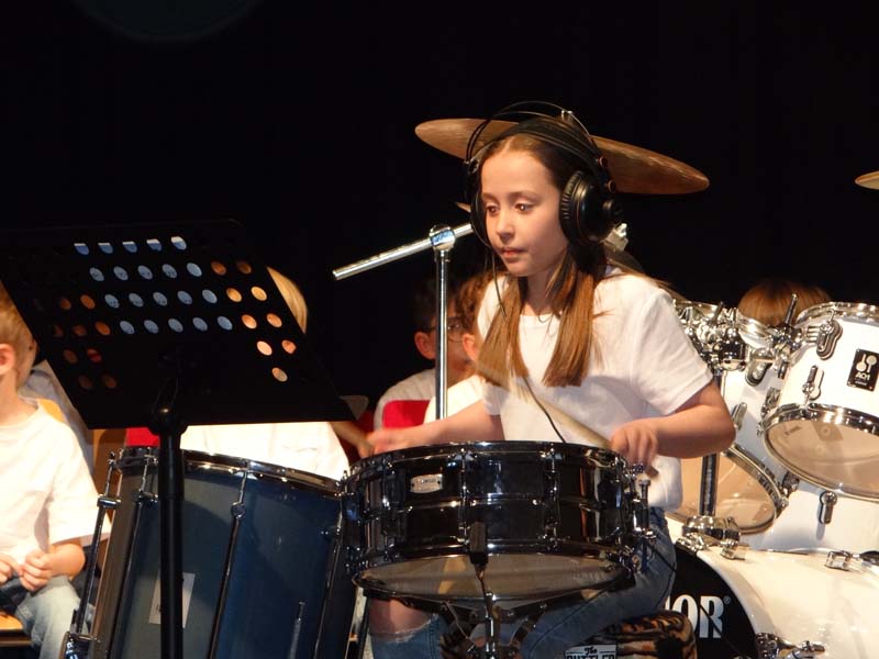 Auf der Snare-Drum, am Schlagzeug und mit Stabspielen wurde der Saal zum Beben gebracht.